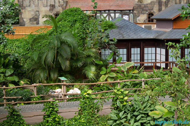 Das Erlebnisbad ist rund um die Uhr geöffnet und man kann Zimmer oder Zelte innendrin für die Übernachtung buchen. Unsere Hütte war direkt beim Flamingo-Pool, die sind ganz schön laut 🙂
